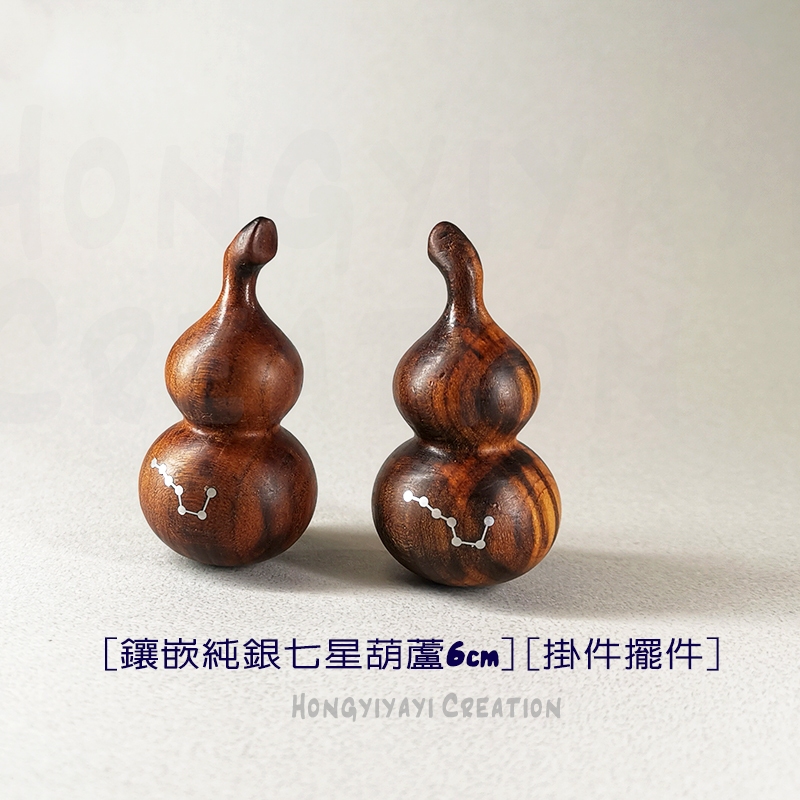雷擊木 雷擊桃木 七星葫蘆 鑲嵌純銀葫蘆 福祿 贈收納袋 雷擊木原木 擺件 兒童平安 避邪 祈福禮物 開運化煞鎮宅t68