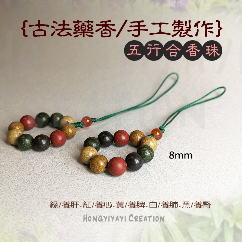 合香珠 五行合香珠小吊飾 藥香珠 手工炮製天然原材 贈收納袋 香珠 養生禮物 中藥手串 古法香珠 吊飾 五行 木火土金水