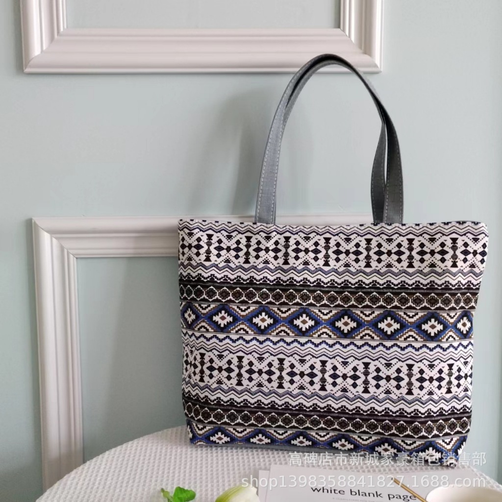 ~快速寄件~ 全新現貨 時尚 質感極佳 民族風 條紋 帆布包 休閒單肩女包 大容量 手提購物袋 包包 手提袋