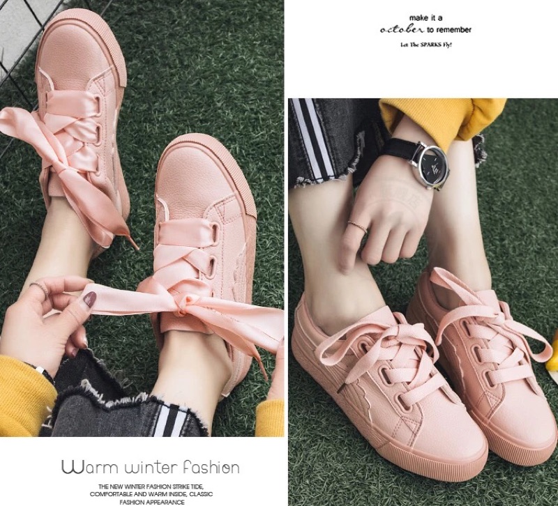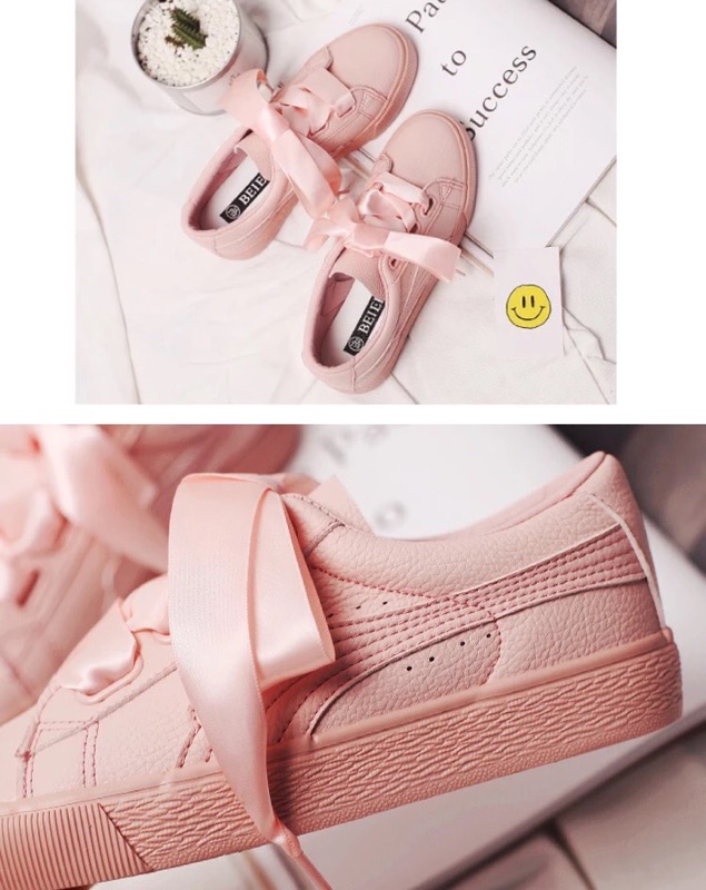 歐美 絲帶 蝴蝶結 粉色 休閒 時尚 可愛 少女 平底鞋 運動鞋 小白鞋 休閒鞋 繫帶 🎀
