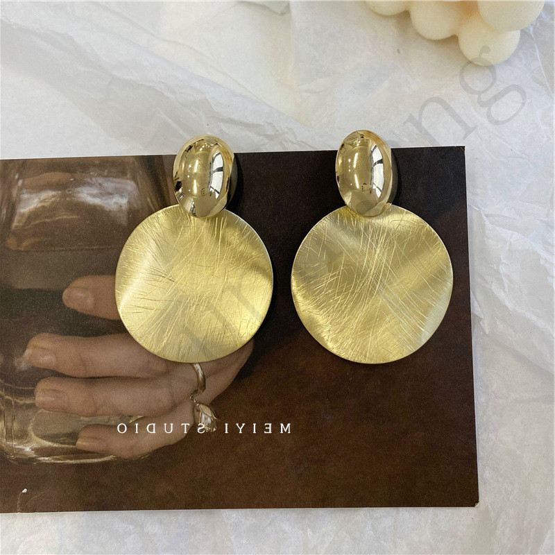【可開發票】誇張圓形大耳環時尚個性氣質金屬幾何複古冷淡風銀針耳釘女