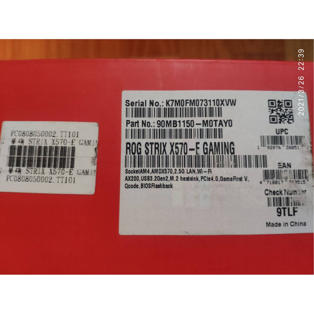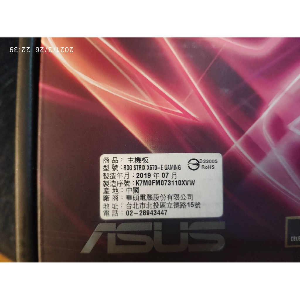 附購買證明 ASUS華碩 ROG STRIX X570-E GAMING ATX/AM4-主機板2021/03/21購入