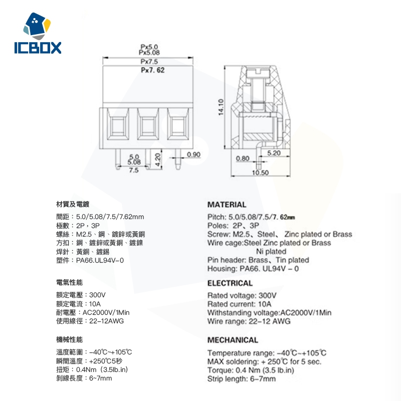 【ICBOX】接線綠色端子 端子台 2PIN/3PIN 間距 2.54~7.5mm 0100101231001/8