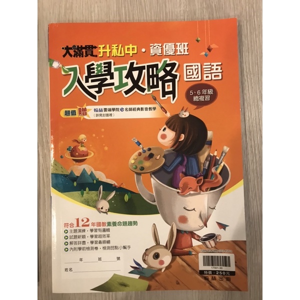 大滿貫升私中資優班入學攻略數學及國語(全新/各一本)