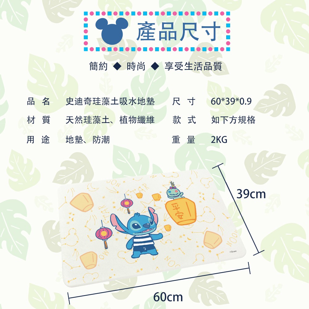 迪士尼 Disney 史迪奇 硬式珪藻土地墊 60x39 硅藻土 腳踏墊 防潮 矽藻土【5ip8】DN0004
