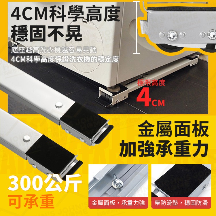 冰箱洗衣機可移動調節式底座 可承重300KG 洗衣機底座 冰箱底座 家具移動底座 移動托架【BF0113】《約翰家庭百貨