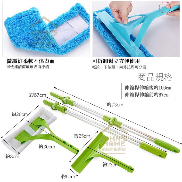 U型可伸縮高樓外窗擦窗器 雙面微纖維布 乾濕兩用擦玻璃器玻璃清潔器 玻璃刮玻璃擦 雙面擦窗【A10601】《約翰家庭百貨