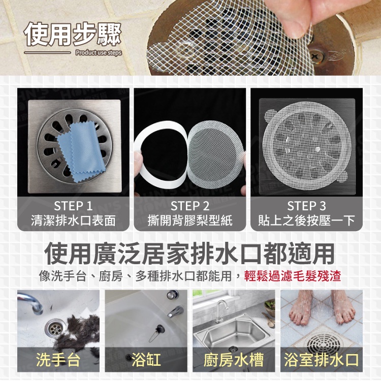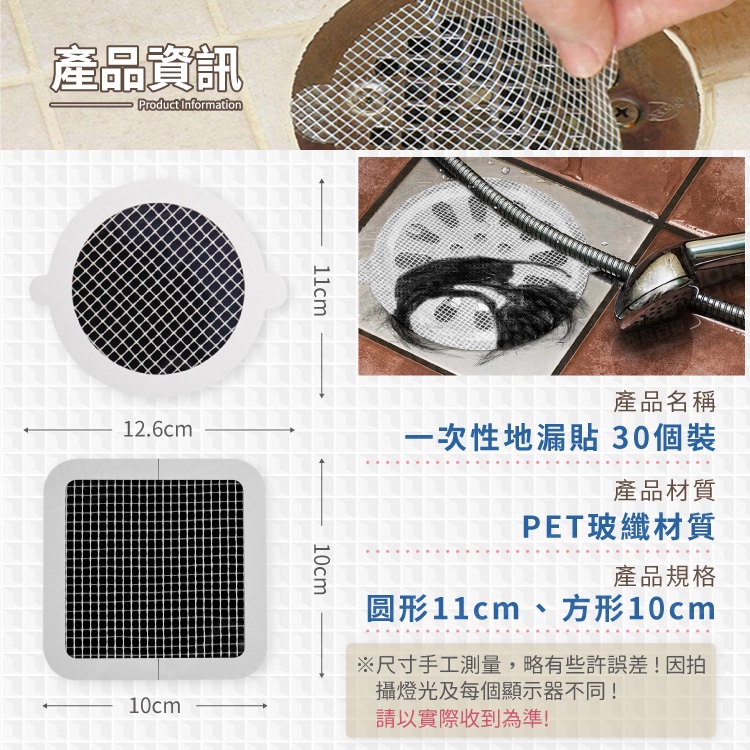 一次性地漏貼 30個裝 細密網格 排水孔貼 毛髮過濾片 過濾網 過濾貼 防臭貼 排水孔防塞【YX0312】《約翰家庭百貨