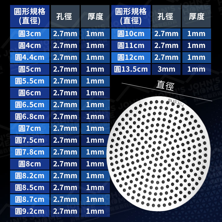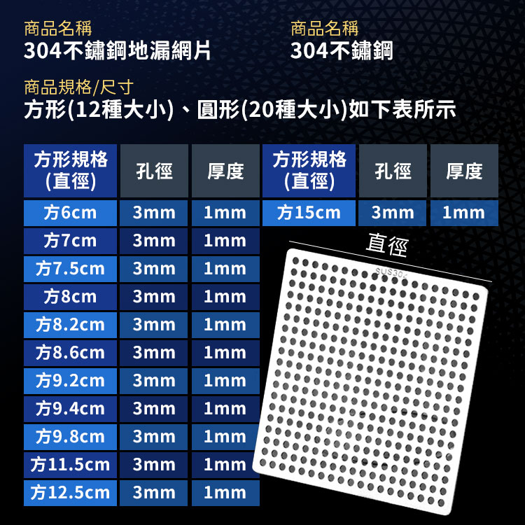 304不鏽鋼地漏網片 多規格 地漏蓋子 過濾網 水槽蓋 排水口濾網 防毛髮堵塞網片 地漏蓋【A50104】《約翰家庭百貨
