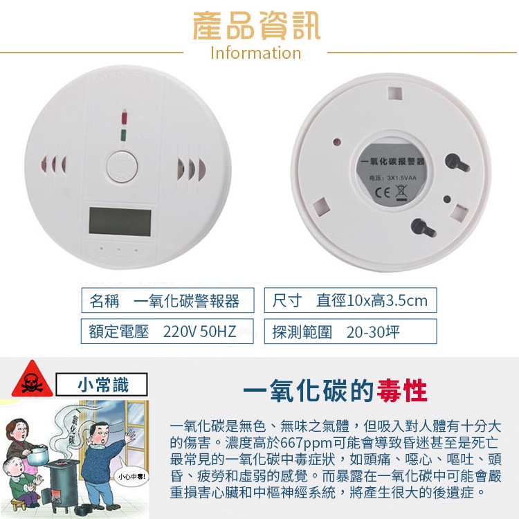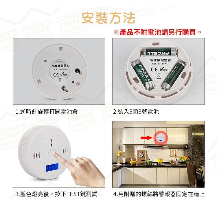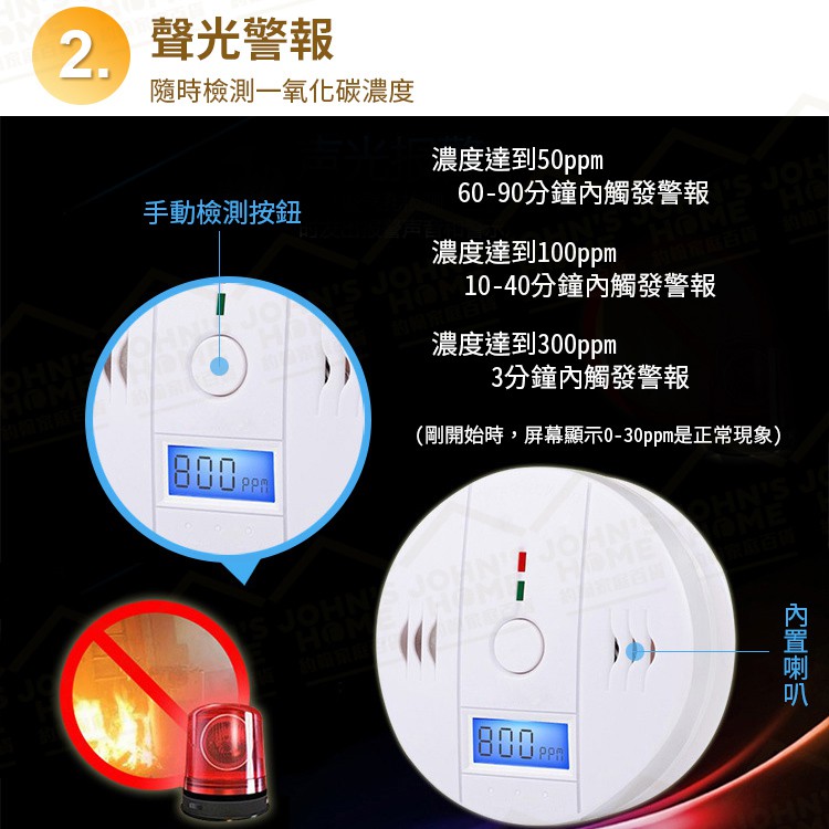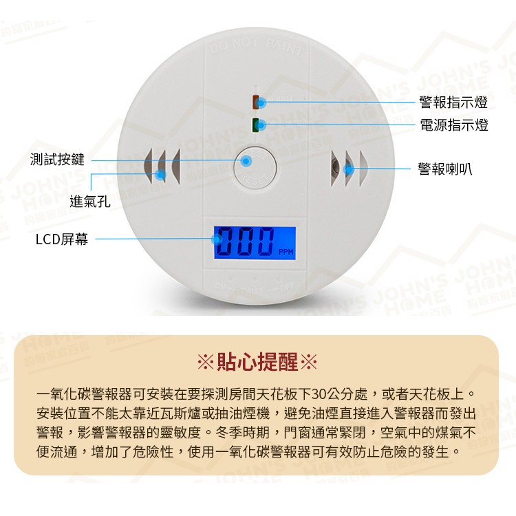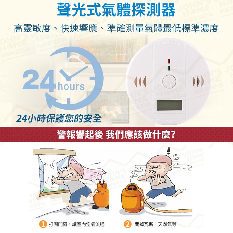一氧化碳探測警報器 避免中毒氣爆意外 天然氣煤氣偵測器 警報器 煙霧警報器 液化氣偵測【A10408】《約翰家庭百貨