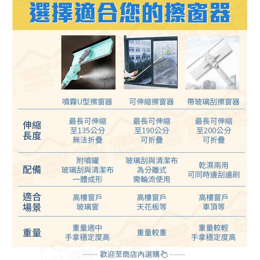 帶玻璃刮U型高樓擦窗器 鋁桿多功能玻璃清潔器 無死角乾濕兩用 玻璃刮刀 刮水器 擦玻璃器【ZD0601】《約翰家庭百貨