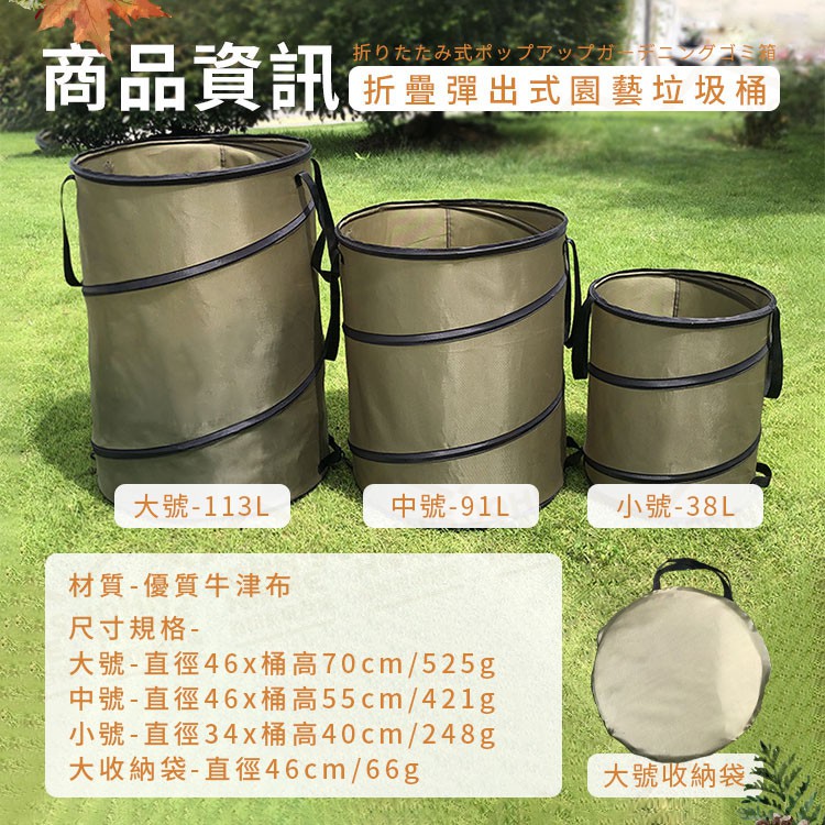 折疊彈出式園藝垃圾桶 多規格 牛津布便攜式 戶外垃圾桶 庭院垃圾桶 大垃圾筒 露營垃圾桶【AE0000】《約翰家庭百貨