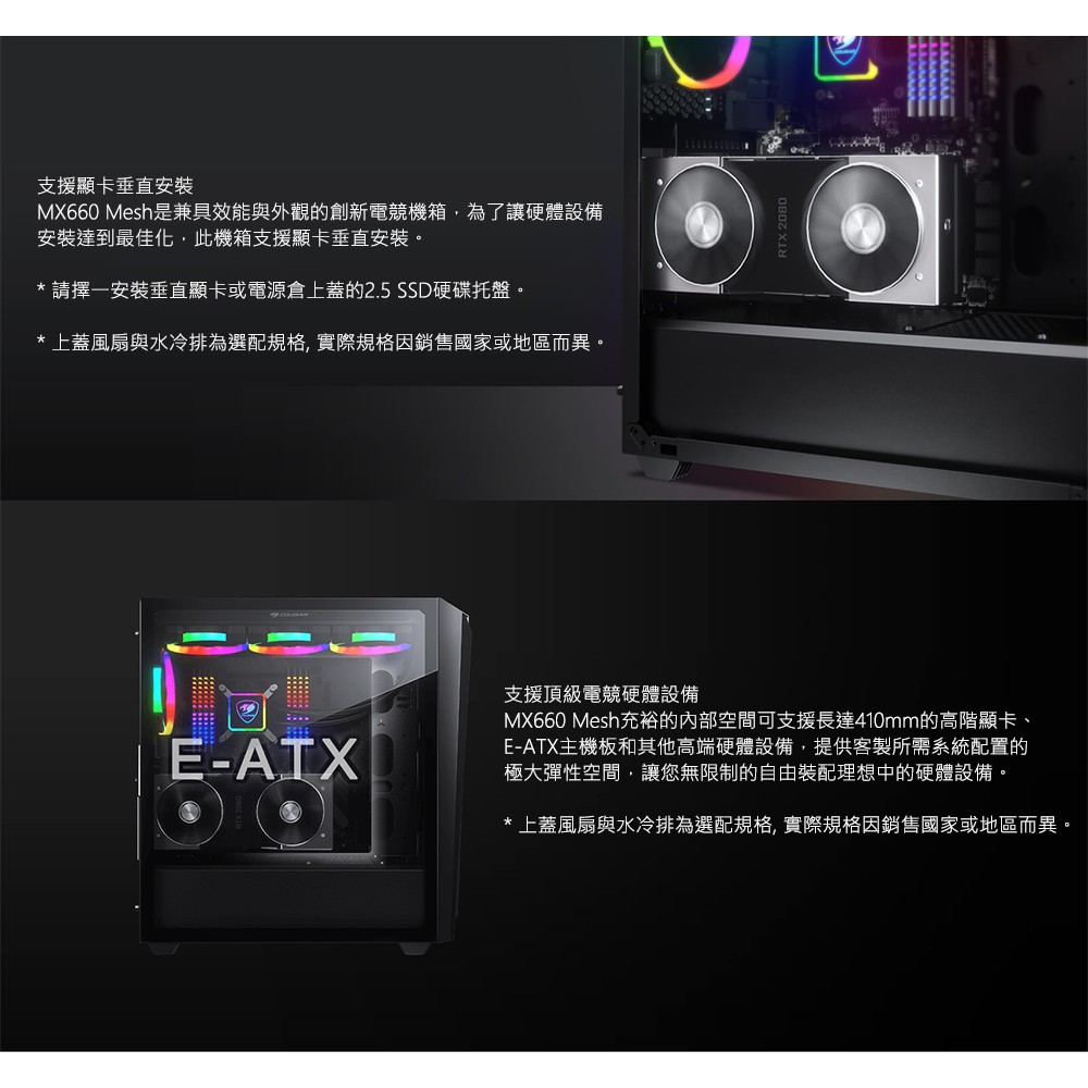 Cougar 美洲獅 MX660 Mesh 中塔機箱 強力散熱 鐵網面板 鋼化玻璃 支援顯卡垂直安裝