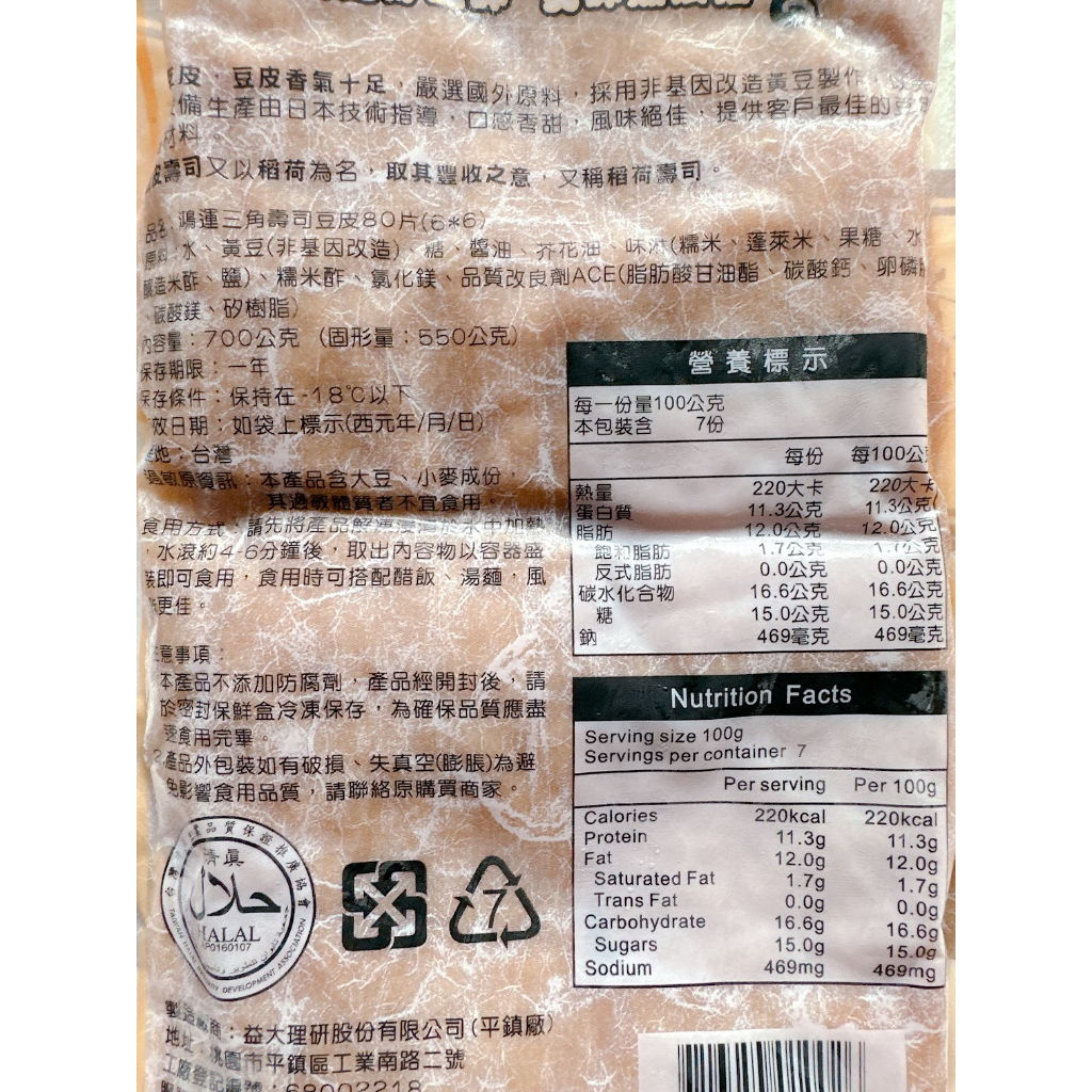 【逸嵐】-三角壽司豆皮/700g/約80片/滿799免運/壽司豆皮/三角壽司/三角豆皮/壽司皮/三角壽司皮/冷凍食品
