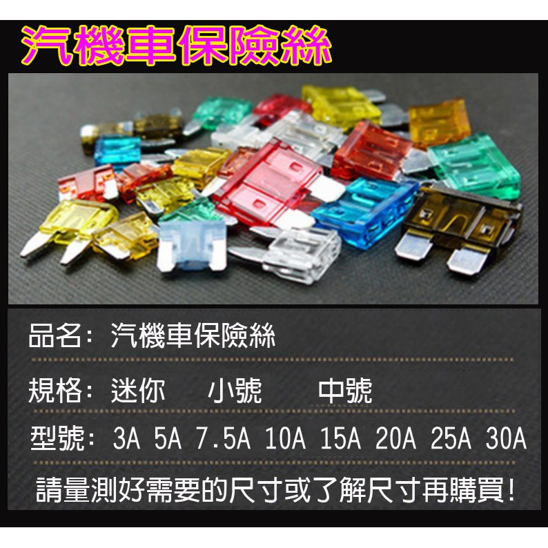 (台灣現貨) 汽車保險絲 機車保險絲 FUSE 保險絲 M型 插式 車用 中號 小號 迷你號 各種安培數/顏色 平角型