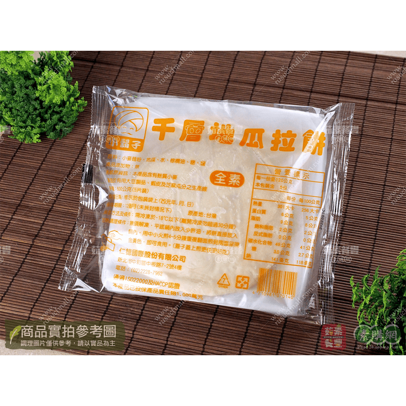 【茹素餐豐】仁德 小鬍子 千層地瓜拉餅(純素)600g 5片入 千層拉餅 純手工製作、甜而不膩,吃的到金黃色綿密口感!