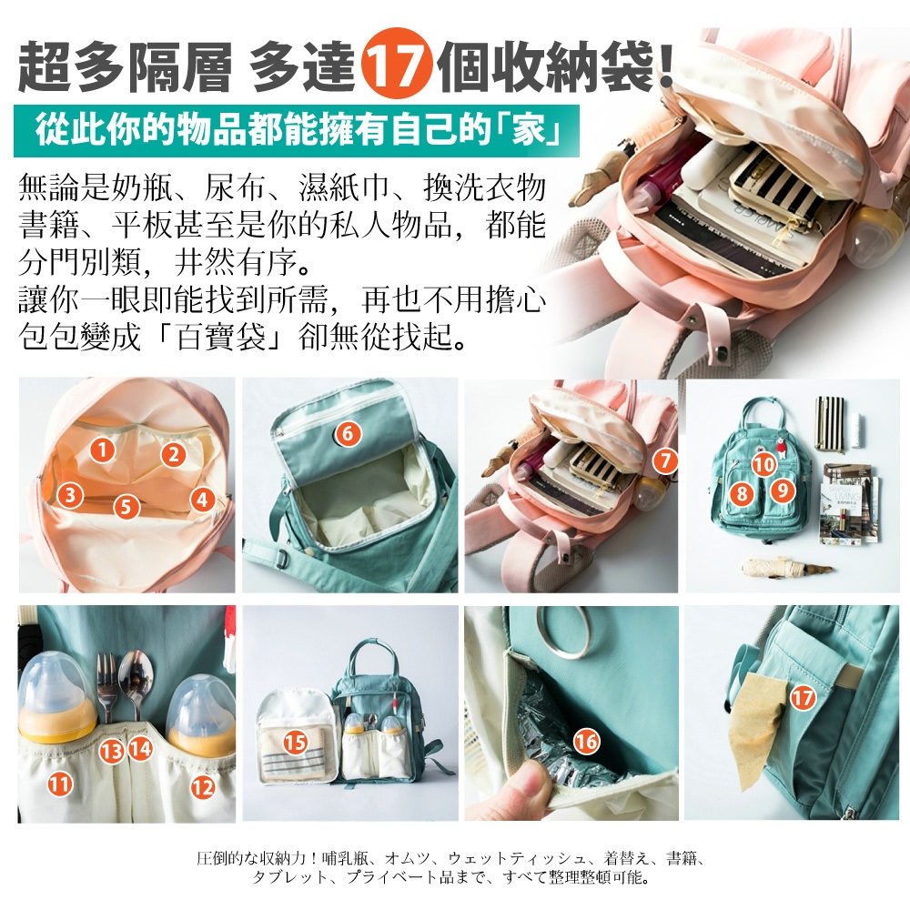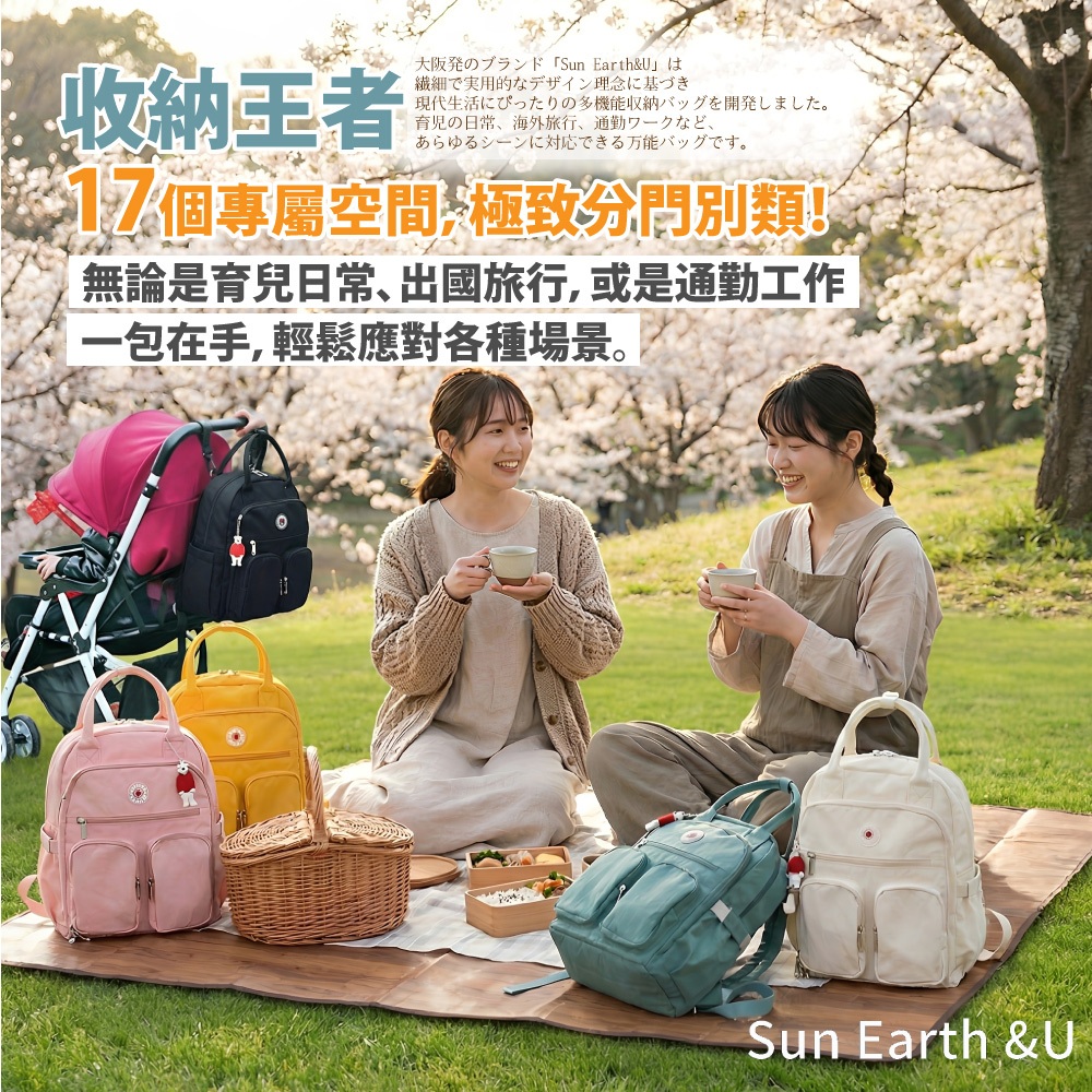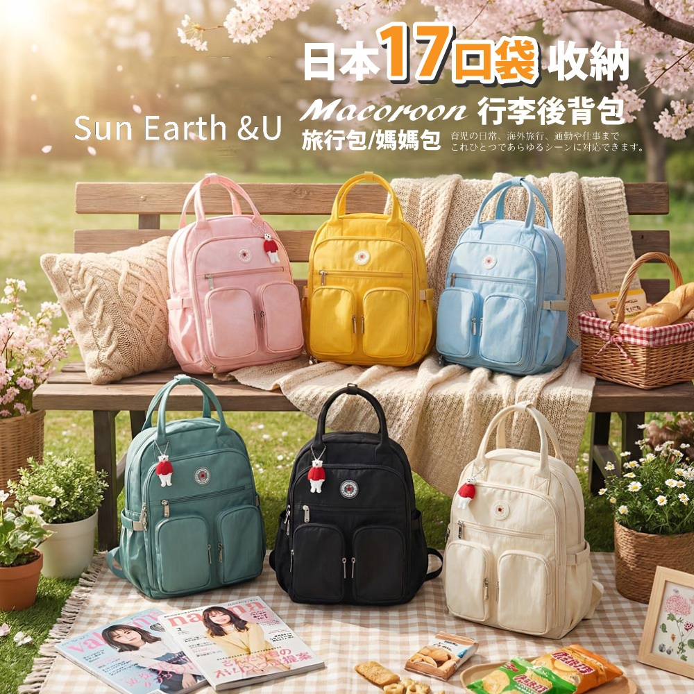 【Sun Earth&U】日本17口袋收納Macoroon行李後背包/旅行包/媽媽包