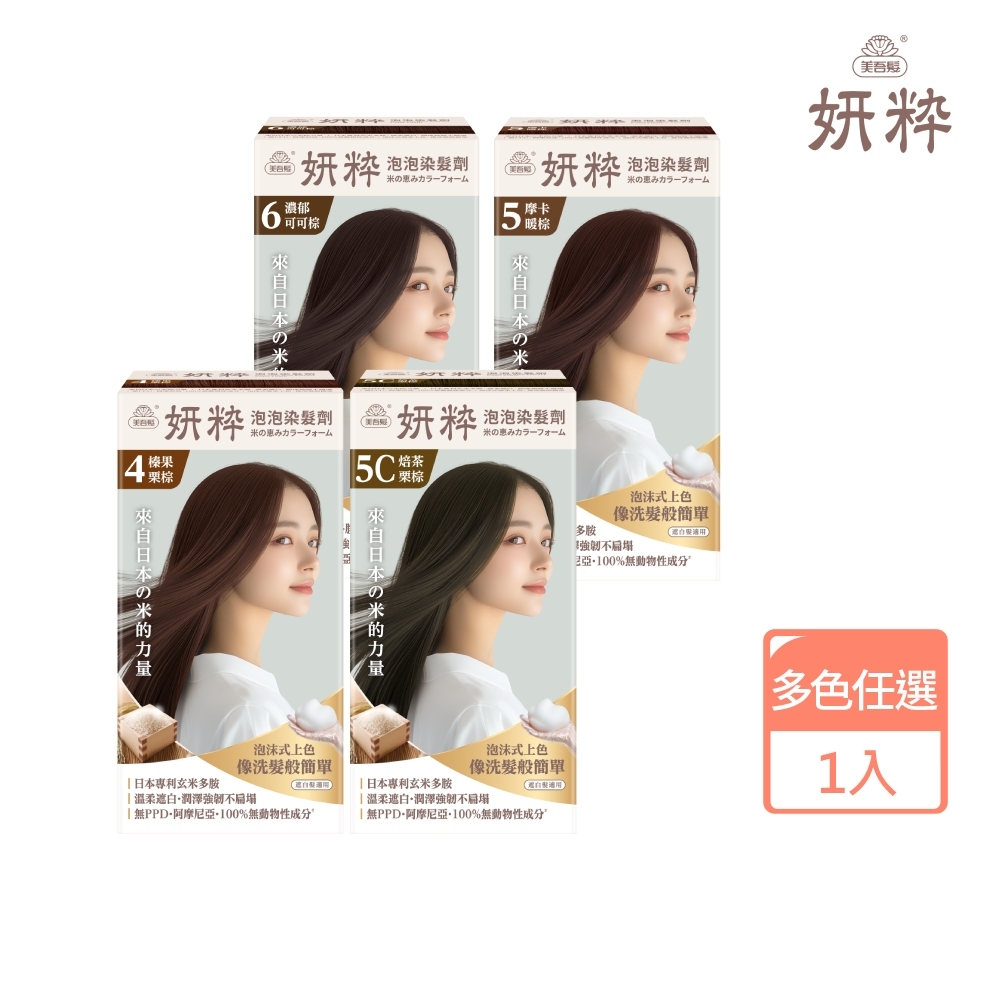 【美吾髮】妍粋泡泡染髮劑(單入/2入) 多色任選/栗棕/暖棕/可可棕