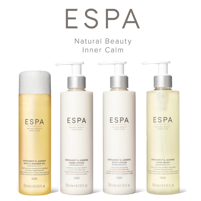 英國 ESPA (日本施舒雅沙龍專用)佛手柑茉莉 沐浴乳/洗髮精/護髮乳/身體乳 四件旅行組
