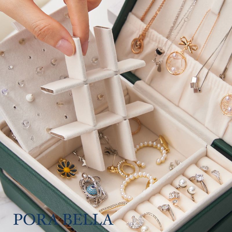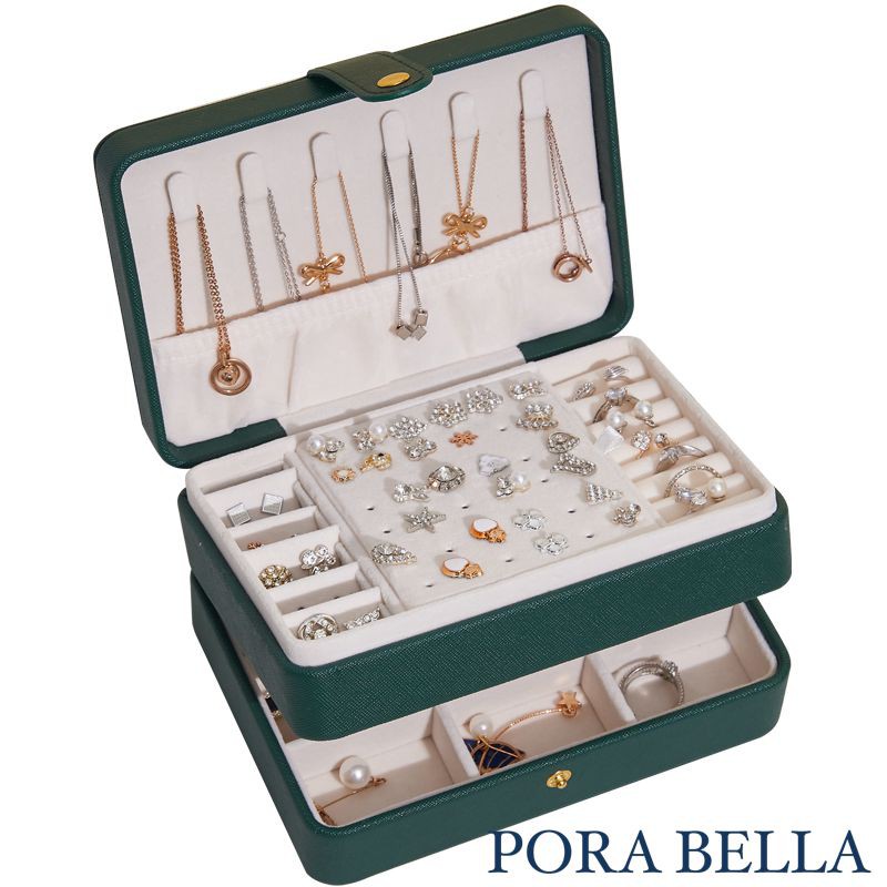 <Porabella>質感皮革首飾盒 新色焦糖摩卡棕雙層收納 飾品收納盒 絨布盒飾品盒 戒指項鍊耳環耳夾收納