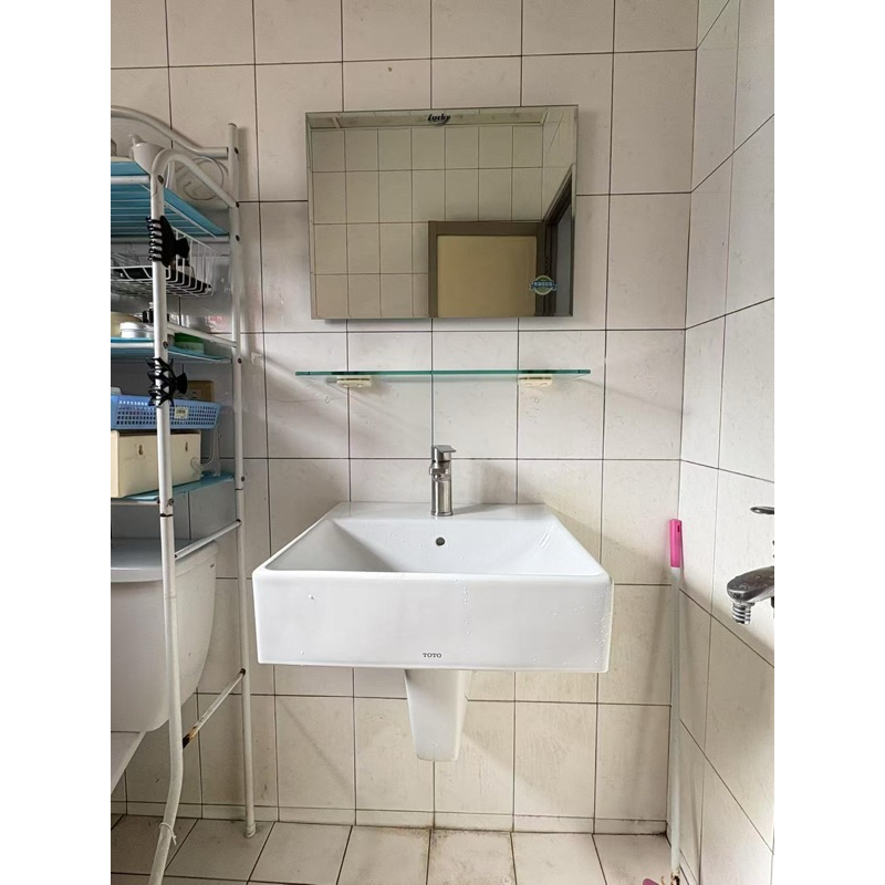TOTO 710短柱盆+不鏽鋼水龍頭+鏡子 高雄含安裝 臉盆裂 高雄衛浴 左營衛浴