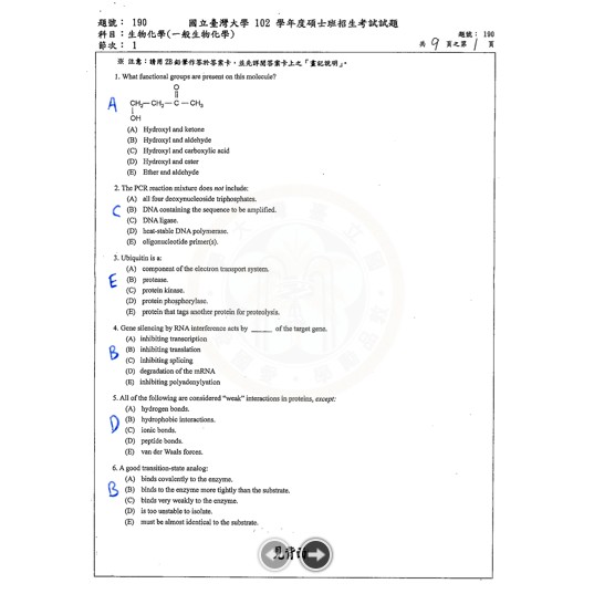 台大102-105一般生化考古題解答 研究所