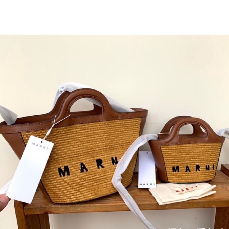 經典款 marni RAW 夏季 草編包牛皮 沙灘包菜籃子包