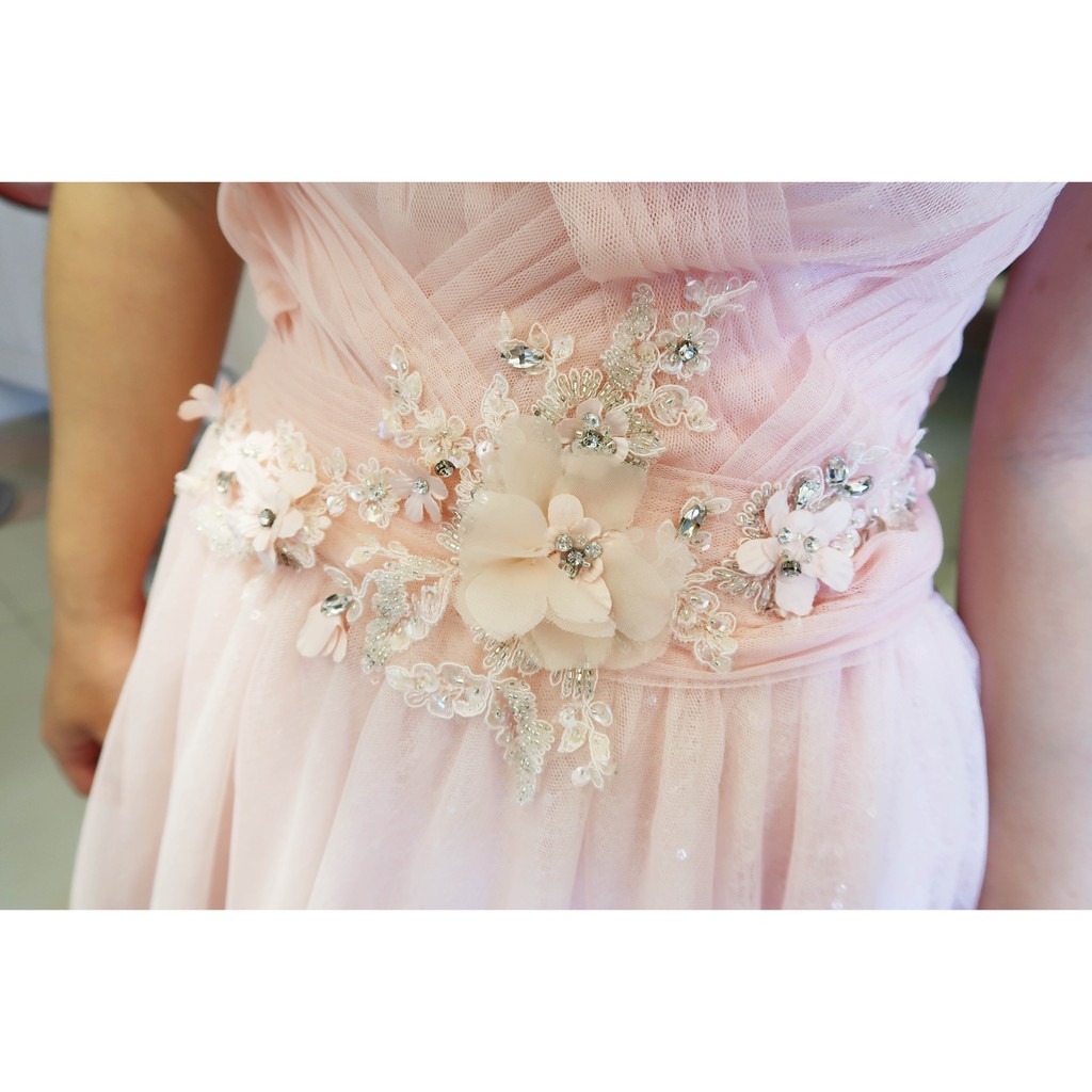 Alisha & Lace 法式手工婚紗 平口粉紅玻璃網紗二手婚紗