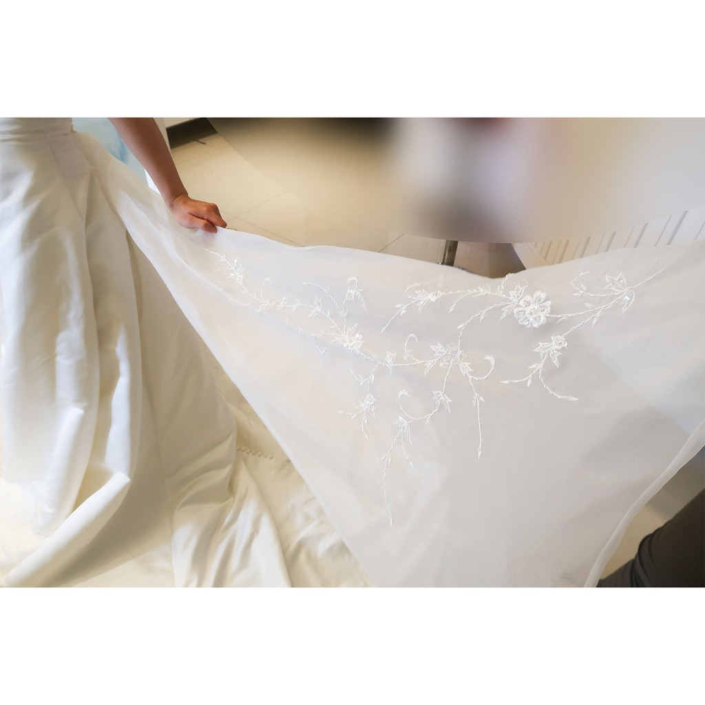 最愛 桃心領緞面典雅白紗