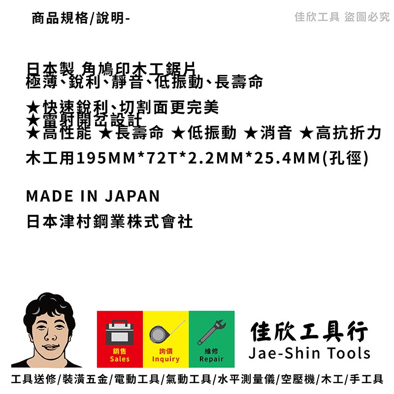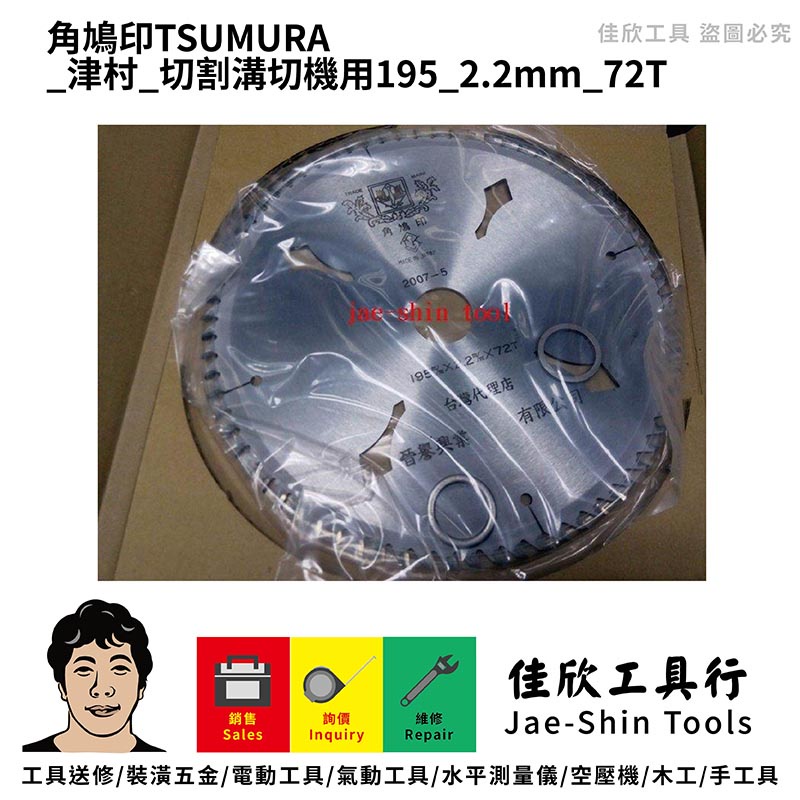 含稅[佳欣工具]日本製 角鳩印TSUMURA 津村 切割溝切機用195*2.2mm*72T