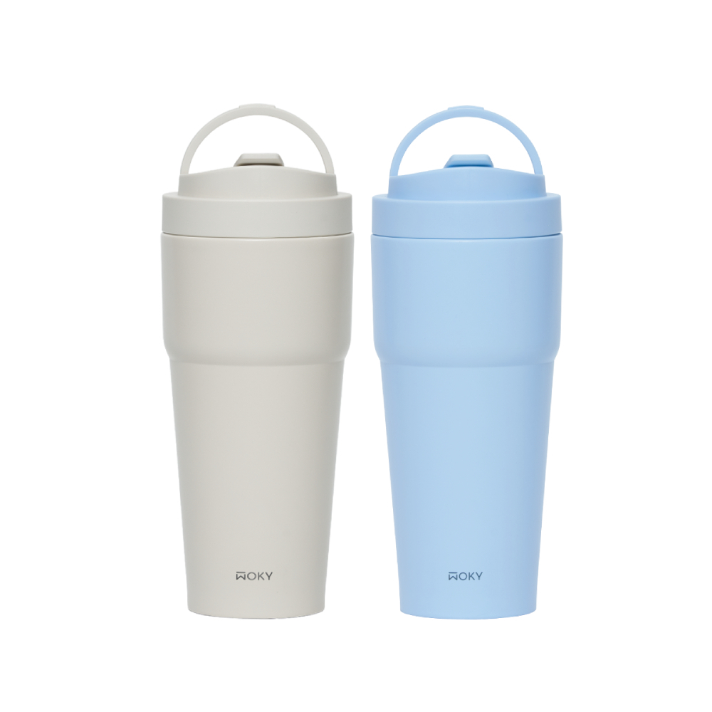 【WOKY 沃廚】雙層陶瓷渾圓杯750ml (附矽膠吸管)_送上蓋+底墊(隨機色)