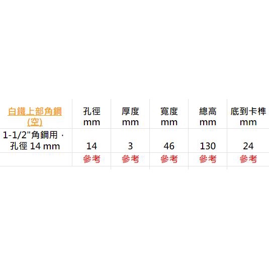 (單個價) 白鐵上部角鋼 (空) (不付螺絲)孔徑14mm【榮信昌】(+角鋼) 適用市售免螺絲角鋼1-1/2"不付螺絲)