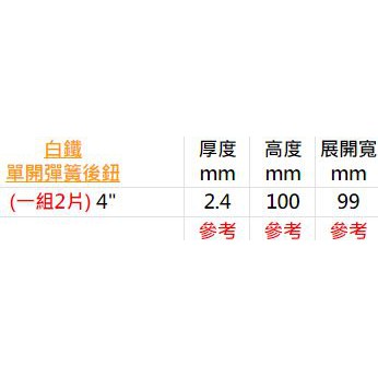 白鐵單開彈簧後鈕 4" (一組2片) 附螺絲 【榮信昌】 單開彈簧後鈕 彈簧後鈕 自動歸位 後鈕 鉸鏈 蝴蝶後鈕 鉸鍊