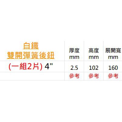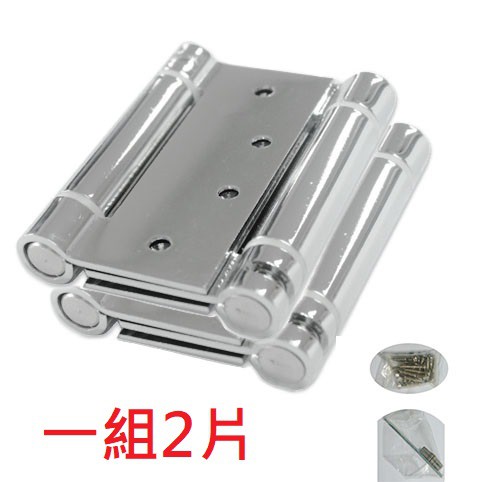 白鐵雙開彈簧後鈕 4" (一組2片) 附螺絲 【榮信昌】 雙開彈簧後鈕 彈簧後鈕 自動歸位 後鈕 鉸鏈 蝴蝶後鈕 鉸鍊