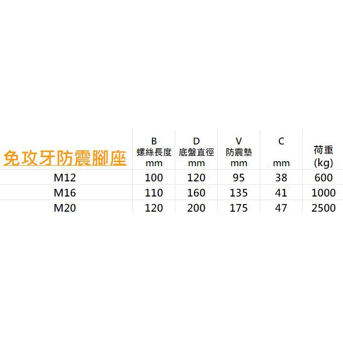 單一個) 免攻牙防震腳座 M12,M16,M20【榮信昌】免攻牙 調整腳座 腳座 腳墊 腳蹄 機械腳蹄 防震腳座 調整腳