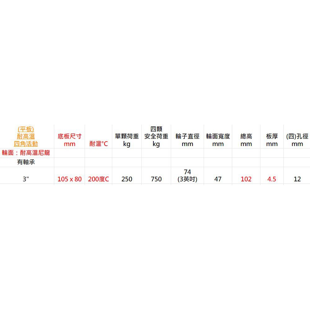 (平板) 耐高溫輪 四角活動 (有軸承) 【榮信昌】 萬向輪 活動 耐高溫 活動輪 腳輪 耐高溫美式輪 美式輪 台車 輪