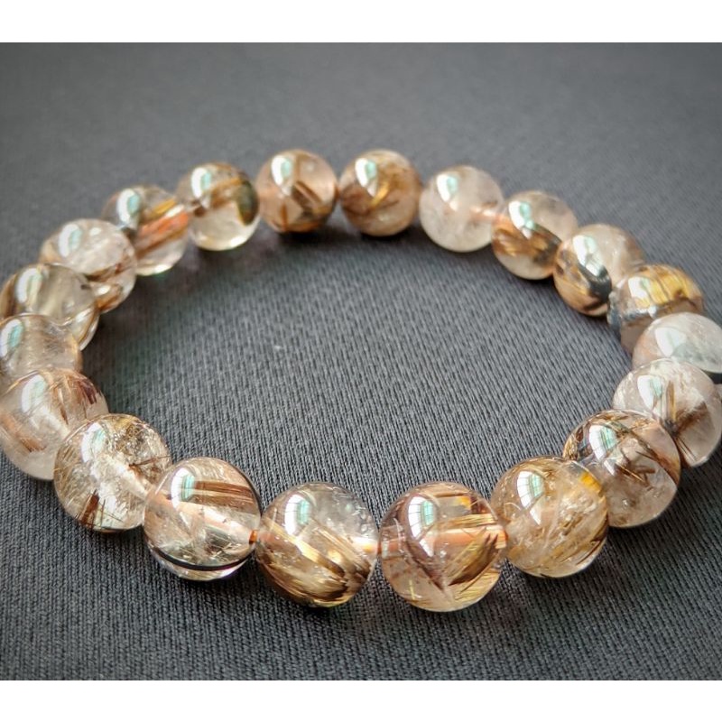 鈦晶手珠_挑戰最低價_天然巴西金髮晶_咖啡鈦_手串手鍊_招財聚氣_串珠diy材料_交換禮物
