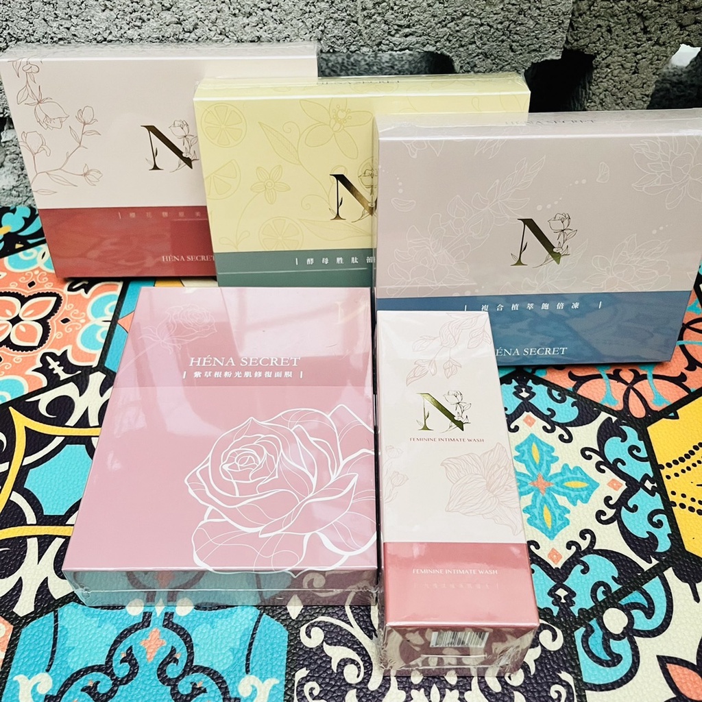 HÉNA SECRET櫻花膠原美莓凍|酵母胜肽蕾萌Tea|九胜肽植萃肌蜜洗|複合植萃飽倍凍|紫草根粉光肌修復面膜