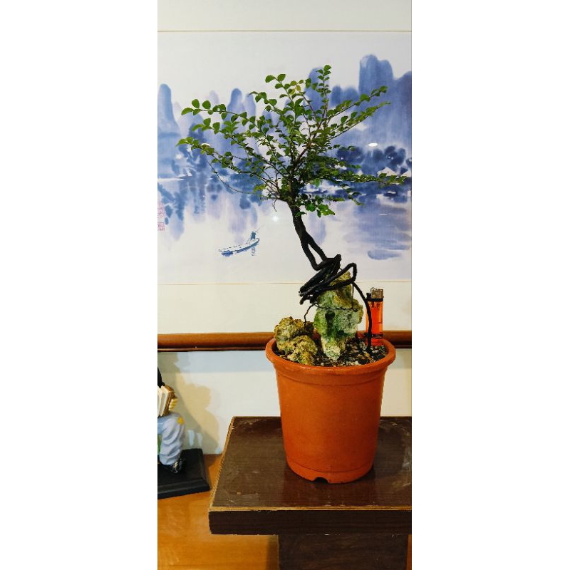 140Q# 小葉紫檀~絕美高提裸根根藝附石~藝術極品盆栽~擺設盆栽~送禮首選 ~桌上盆景
