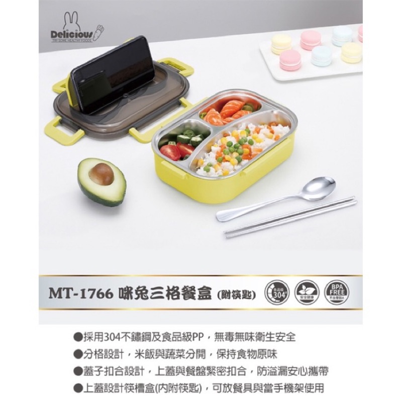 《光華小舖🥰》【咪兔】三格餐盒800ml(附筷匙)MT-1766