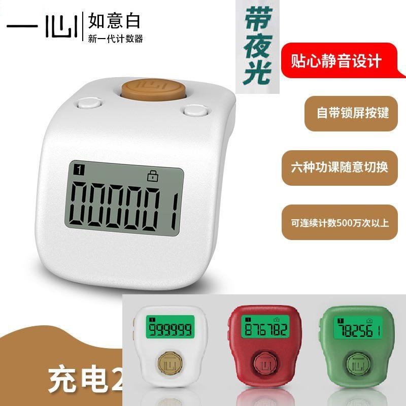 【領免運卷】台灣現貨 新一代一心念佛計數器,夜光迷你,免電池充電式,6個頻道,日本進口無聲按鍵自在園
