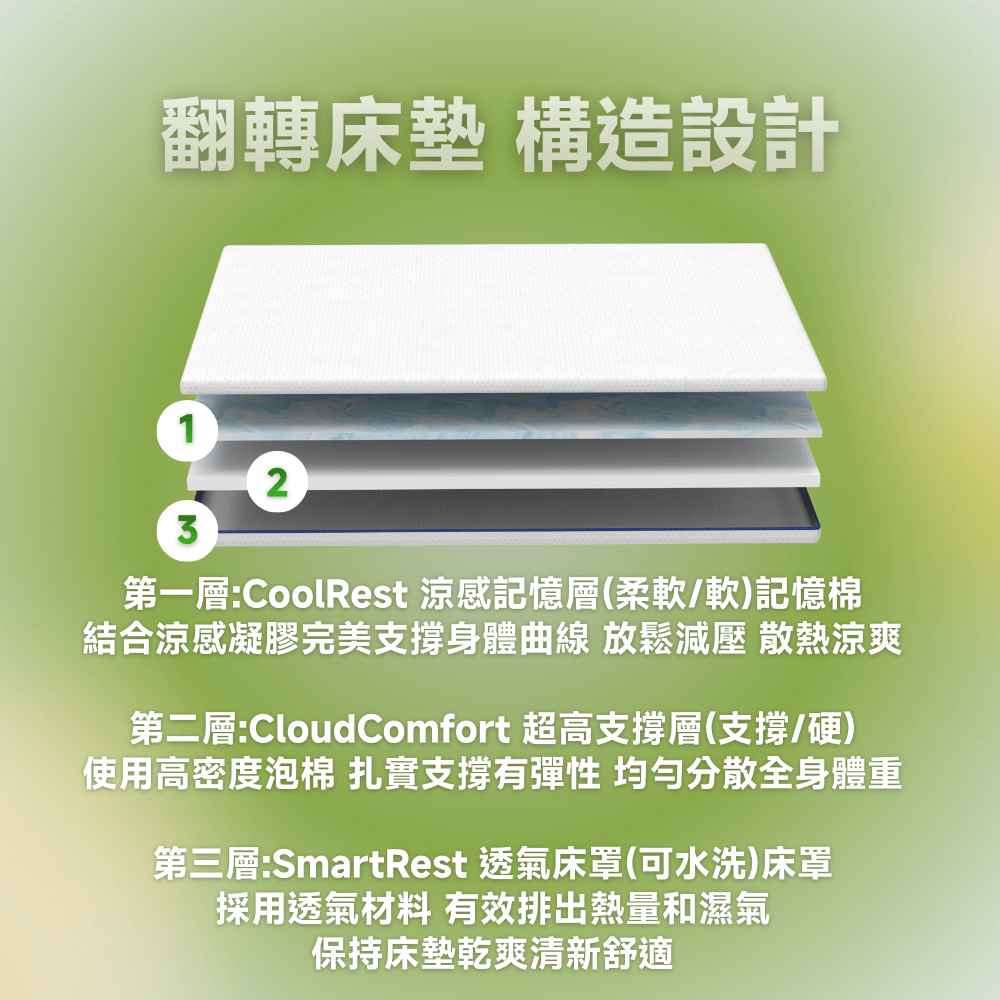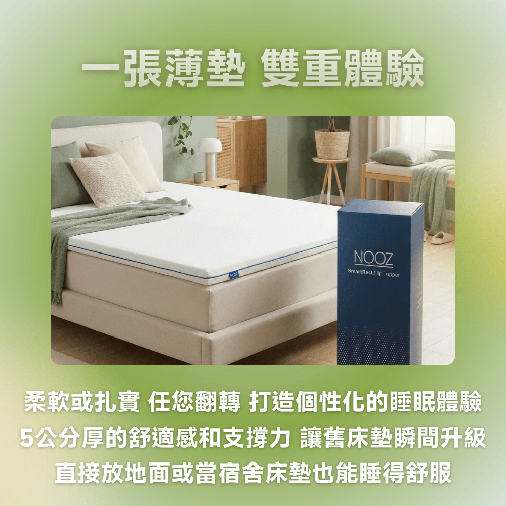 Nooz SmartRest Flip Topper 翻轉床墊丨雙面翻轉軟硬任選 改善舊床墊舒適度(五公分)