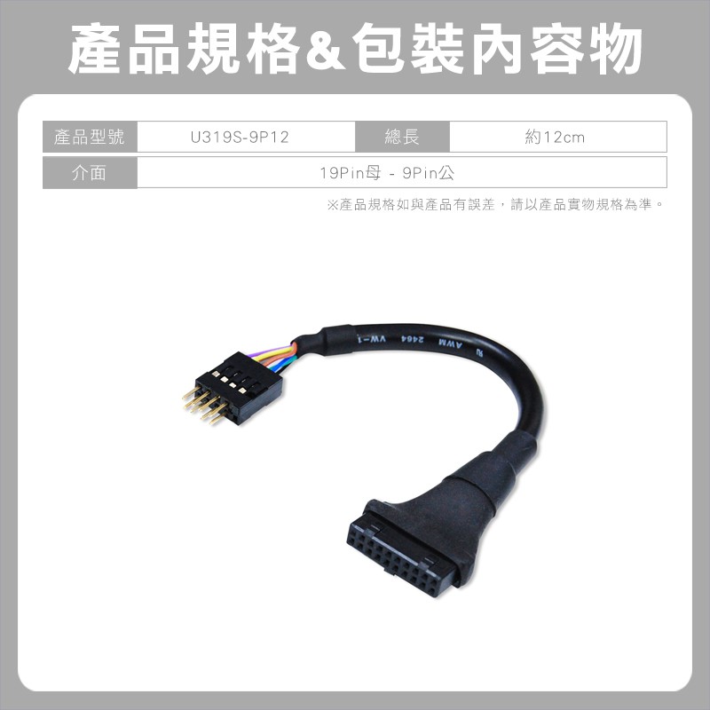CX 主機板轉接排線 19P母 轉 9P公 12cm U319S-9P12 USB 線 2.0 3.0 頭