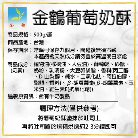 🐻有熊在送🐻附發票 金鶴葡萄奶酥 葡萄乾 奶酥 吐司 抹醬 早餐店 烘培 營業用 900g 現貨