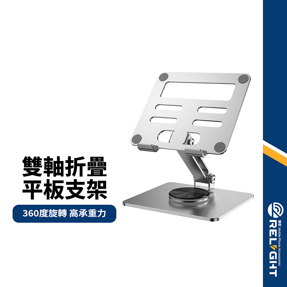 【360度折疊平板支架】雙軸調整 穩定支撐 多重防滑矽膠 耐用防刮 穩固大底座 高承重 鋁合金旋轉支架 桌面升降支架