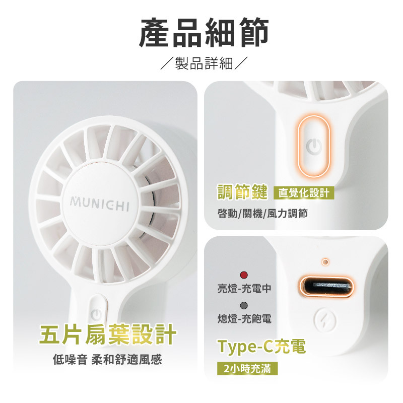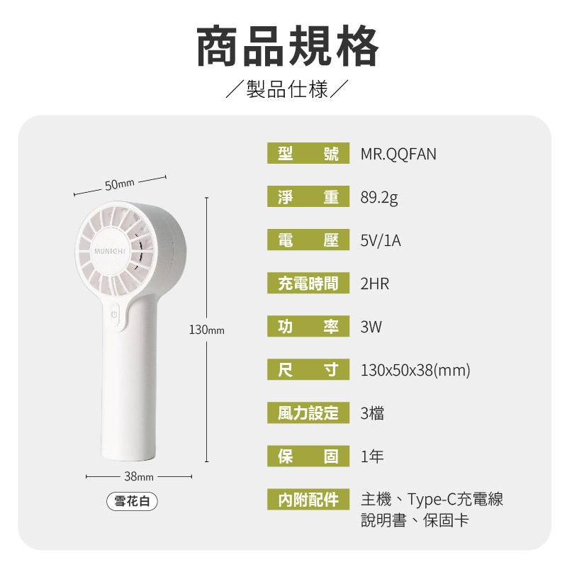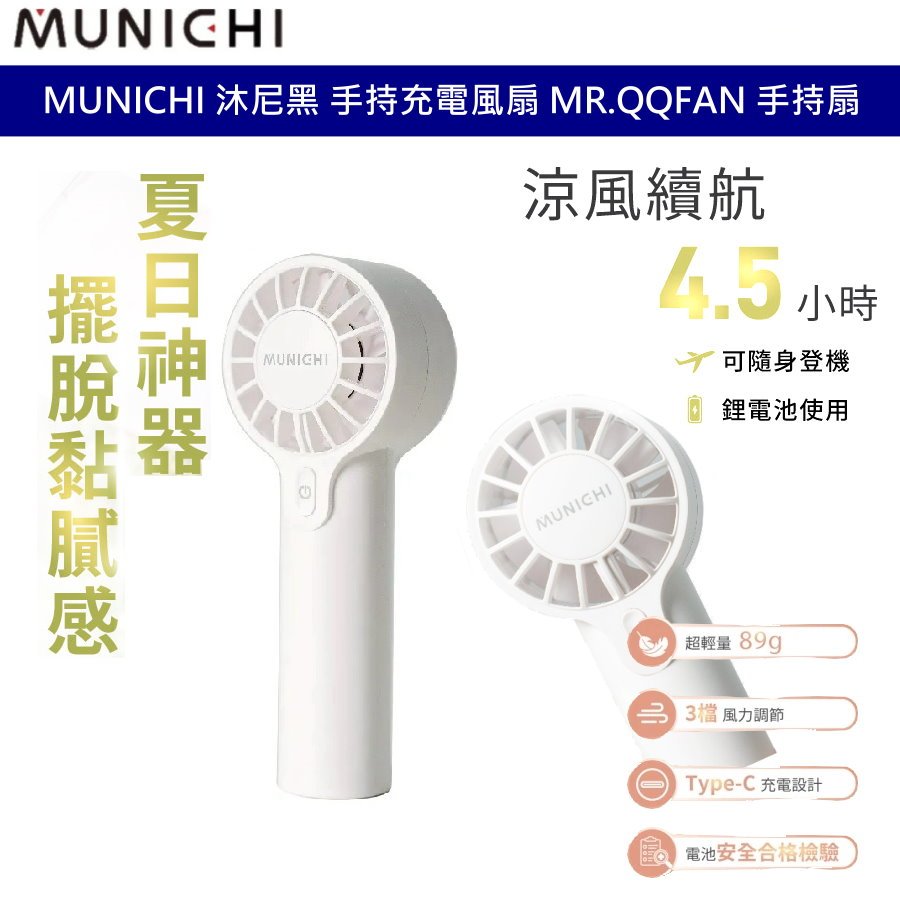 MUNICHI 沐尼黑 迷你勁速手持充電風扇 MR.QQFAN 露營 風扇 隨身風扇 手持扇 Type-C孔 可登機