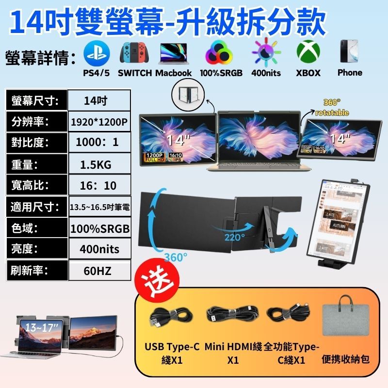 【💥開發票💥】14/15.6 吋筆電螢幕擴展器全高清 1080P IPS單/雙便攜式顯示器可攜式螢幕PS4 Switch
