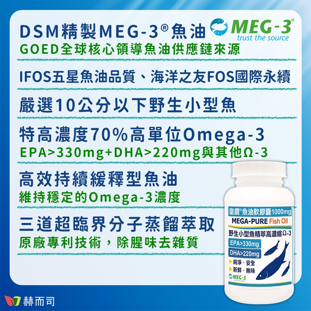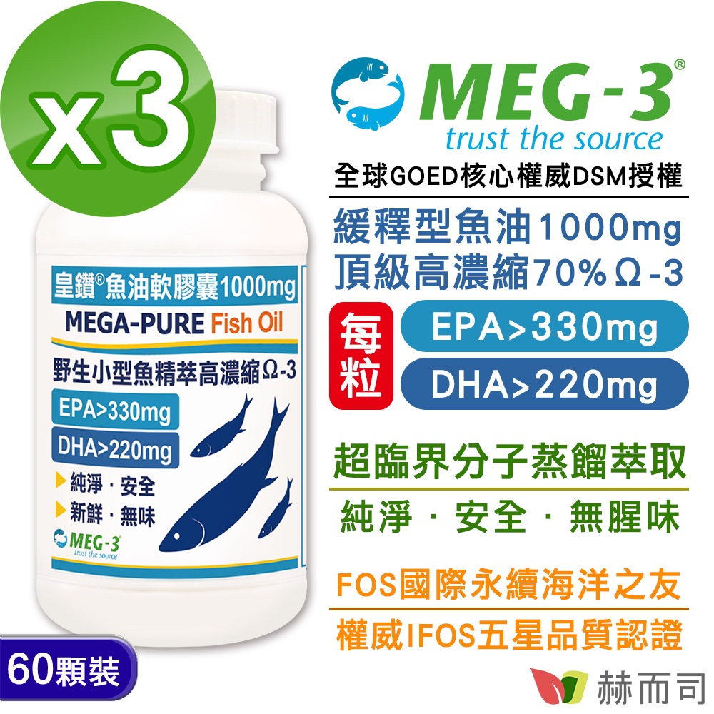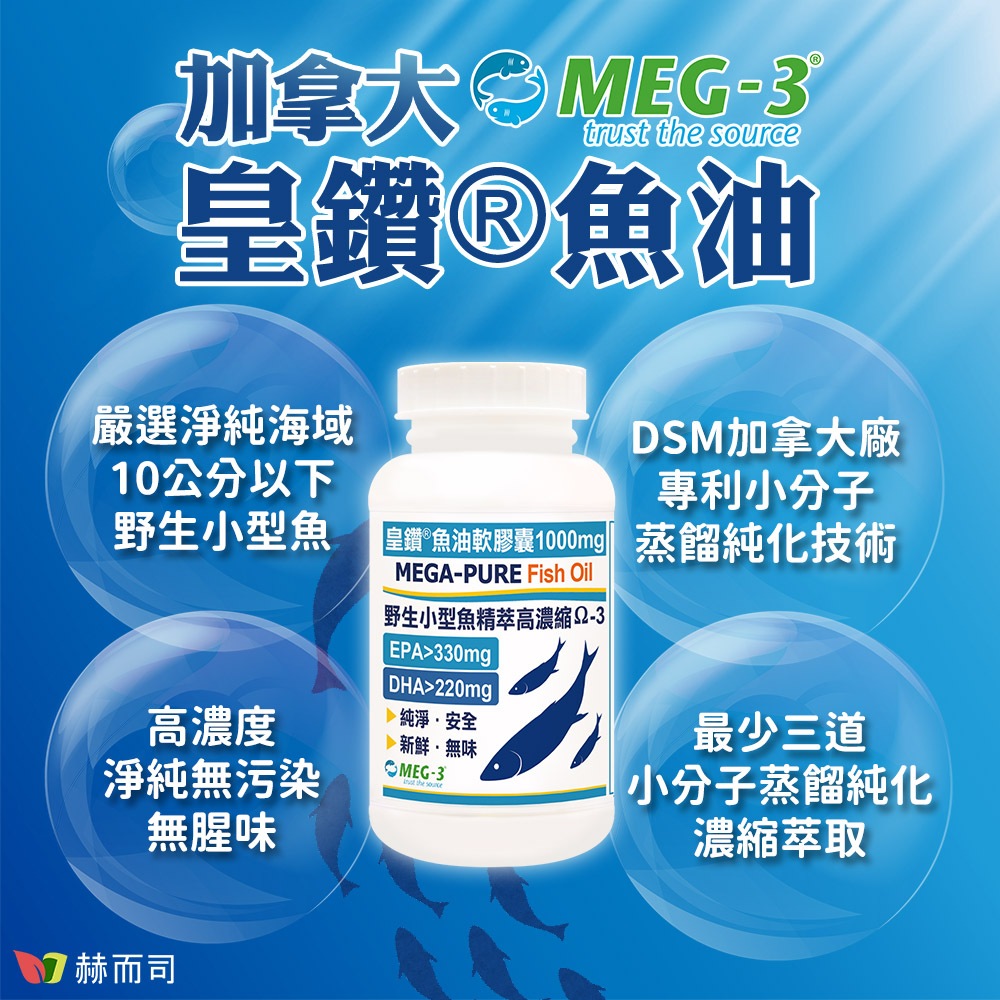 【赫而司】1100mg頂級加拿大MEG-3®皇鑽®魚油EPA+DHA軟膠囊(60顆*3罐)IFOS認證無腥味【赫而司直營