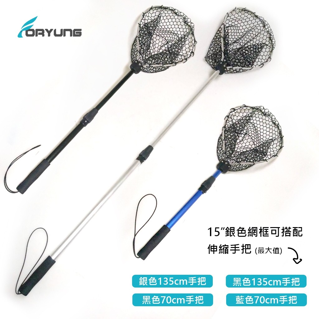 【FORYUNG】15吋 銀色網框 伸縮 手撈網鋁合金撈網 路亞網 魚網 漁網 磯撈網 磯玉柄 溪釣 手抄網 橡膠網