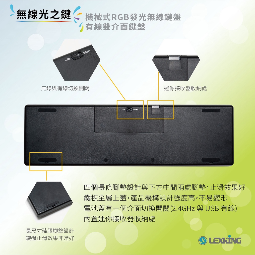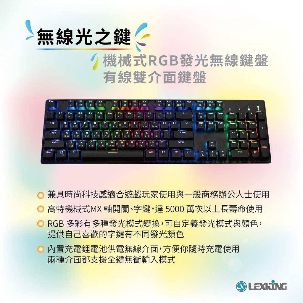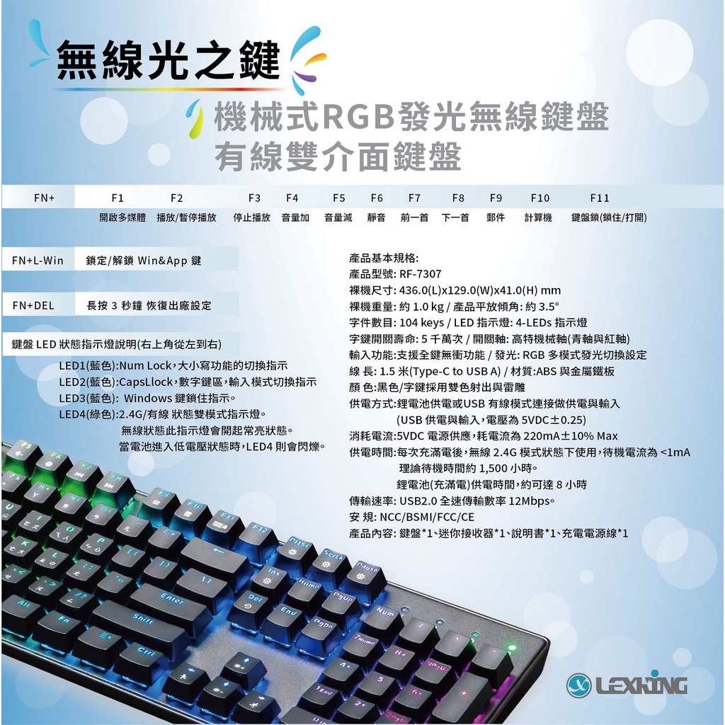 【一統電競】Lexking 雷斯特 RF-7307 (B) 無線光之鍵 RGB 雙模機械式鍵盤 有線+無線+Type C